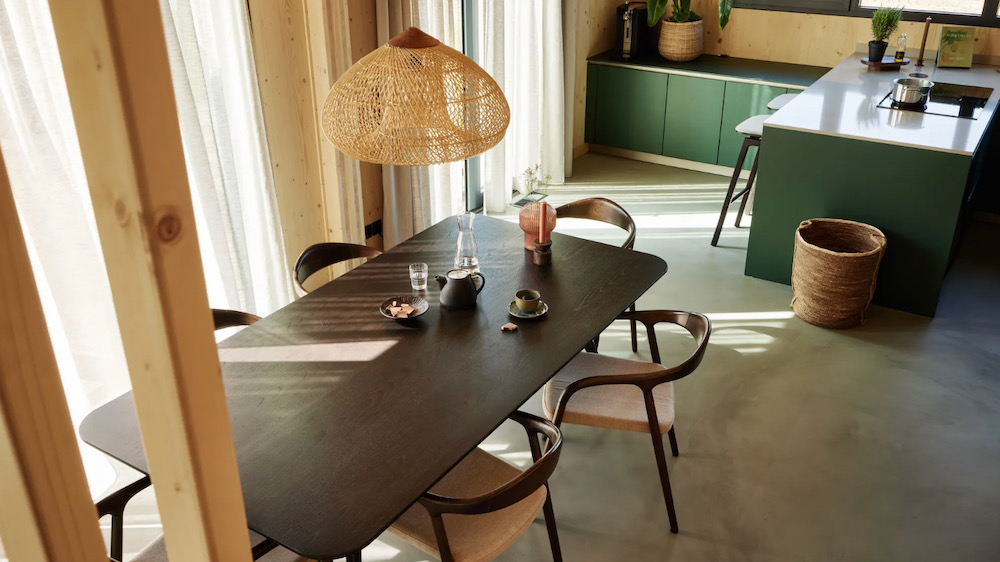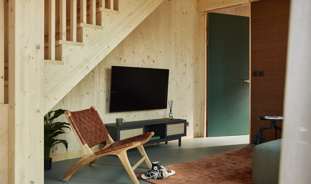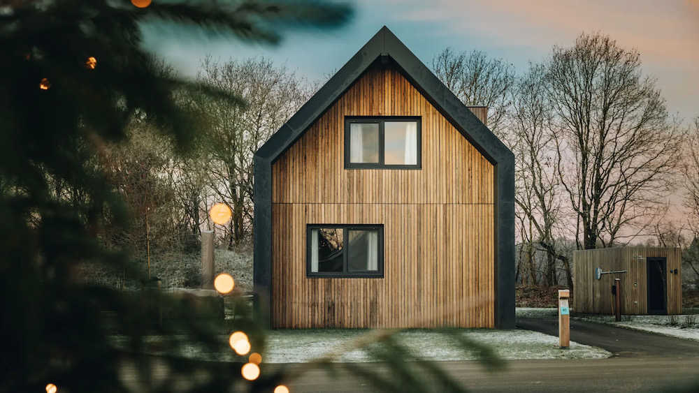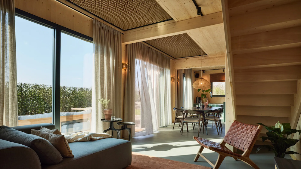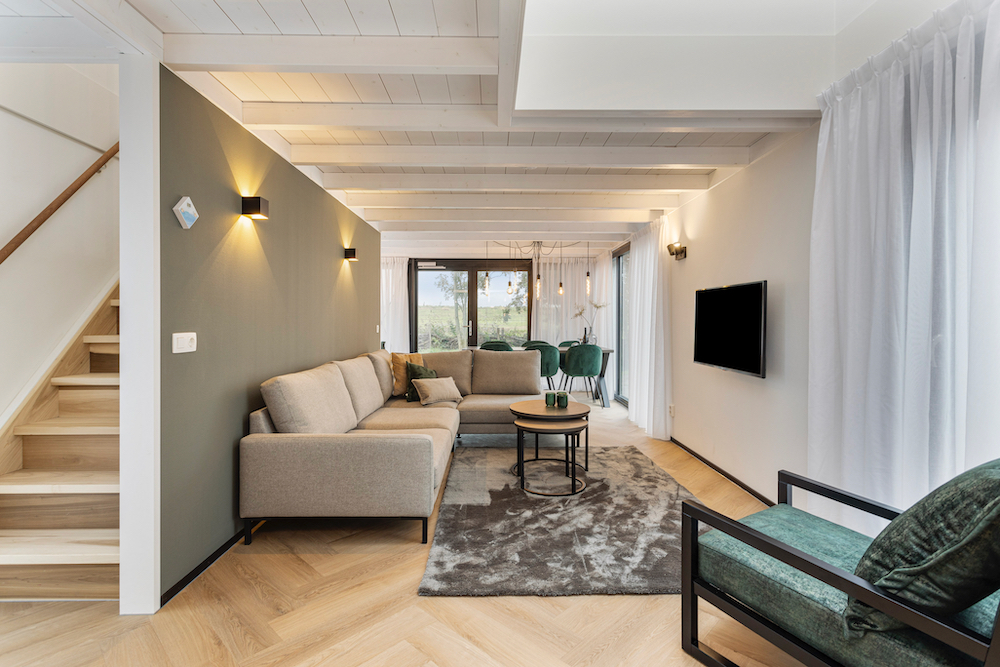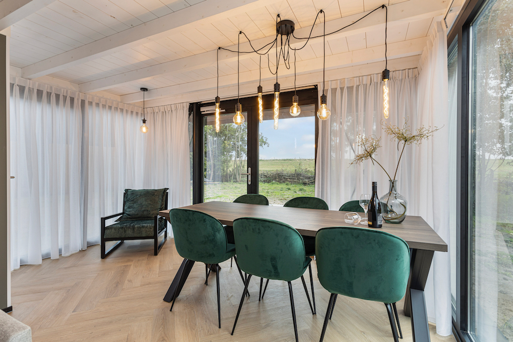 De lodges zijn modern en warm ingericht, vaak met eigen wellness zoals een sauna of jacuzzi. Grote ramen halen buiten naar binnen, zelfs op een regenachtige dag voelt het hier goed.