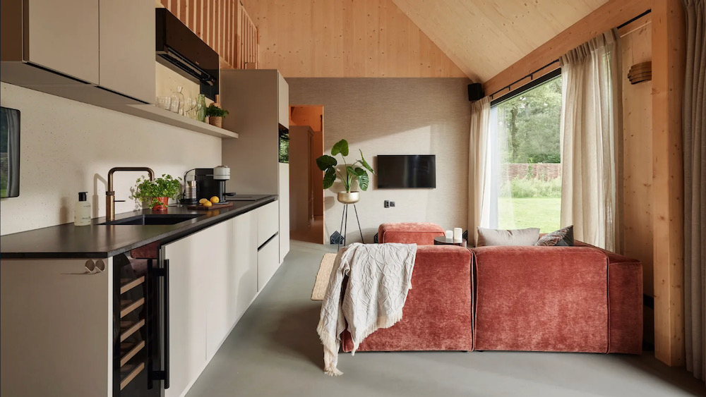 De huizen zijn modern en duurzaam gebouwd (zelfs grotendeels zelfvoorzienend), en voelen warm en comfortabel aan. Grote ramen, natuurlijke materialen en een inrichting die klopt, dit is zo’n plek waar je meteen de dagelijkse sleur van je af laat glijden.