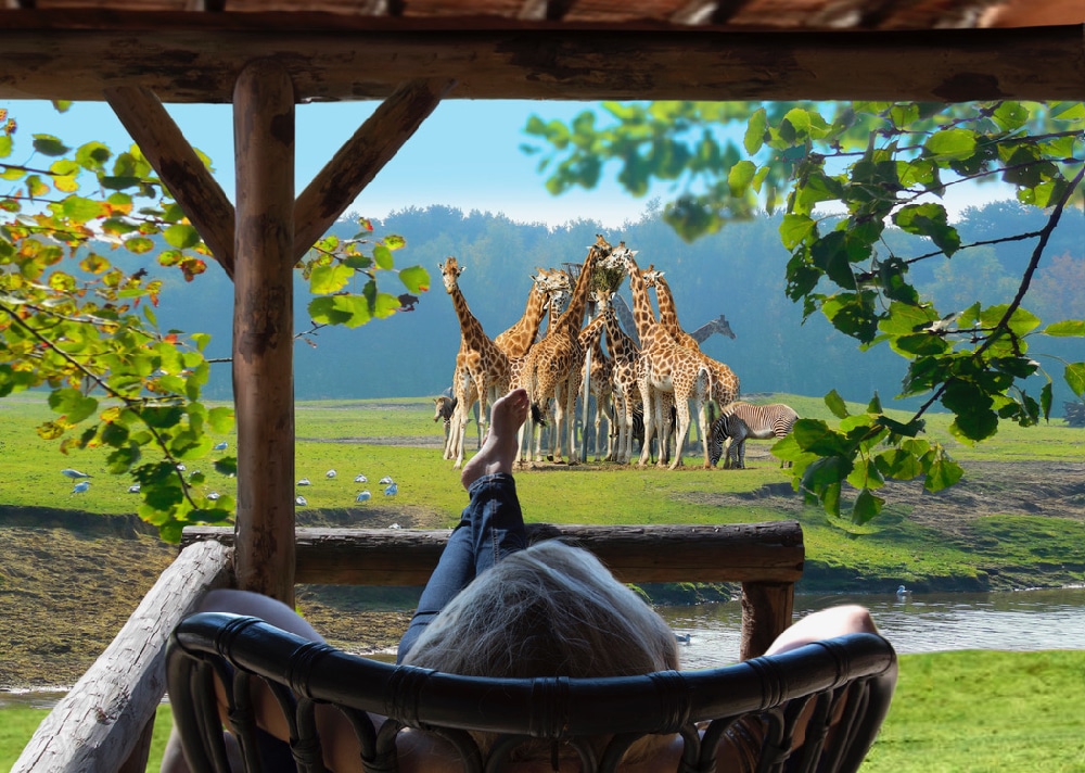 Tijdens een verblijf bij Safari Resort Beekse Bergen waan je je in Afrika, en dat gewoon in eigen land! De lodges, safaritenten en boomhutten staan verspreid tussen de twee savannes en de leeuwenvlakte. Sommige hebben uitzicht op de dieren of het water en een aantal liggen direct aan de speeltuin. Je hebt de keuze uit een 6-, 8- of 14-persoons accommodatie.