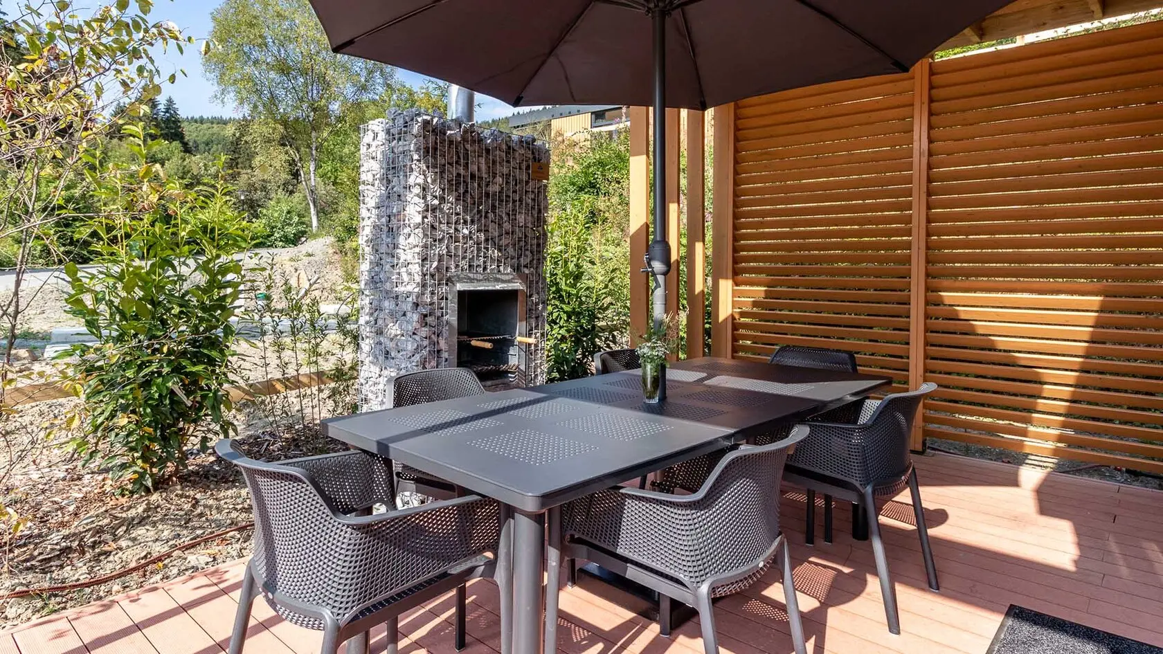 De luxe en moderne vakantiehuizen op UplandParcs Sauerland zijn stijlvol en warm ingericht. De woonkamer heeft een gezellige zithoek, eethoek, slaapbank en pelletkachel. De grote ramen in de woonkamer zorgen ervoor dat je ultiem geniet van het omliggende berglandschap. Bovendien vind je in het huisje een volledig uitgeruste open keuken, twee slaapkamers en een badkamer met sunshower. Heerlijk voor wie toe is aan ontspanning na een dag wandelen, fietsen of skiën. Buiten vind je een ruim terras met een pergola en barbecue. Wie op zoek is naar extra luxe boekt het wellness huisje met houtgestookte hottub en dakterras met uitzicht over de omgeving. Kom je met kids? Boek dan het kindvriendelijke huisje met eigen glijbaan.