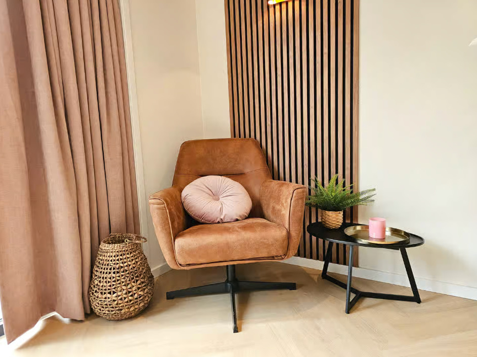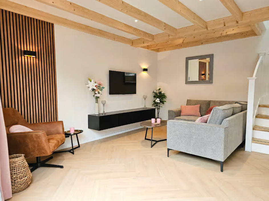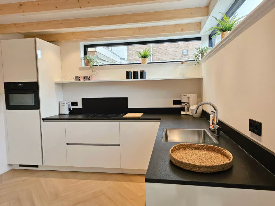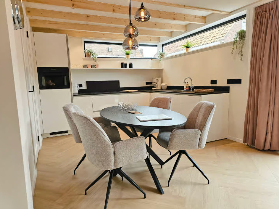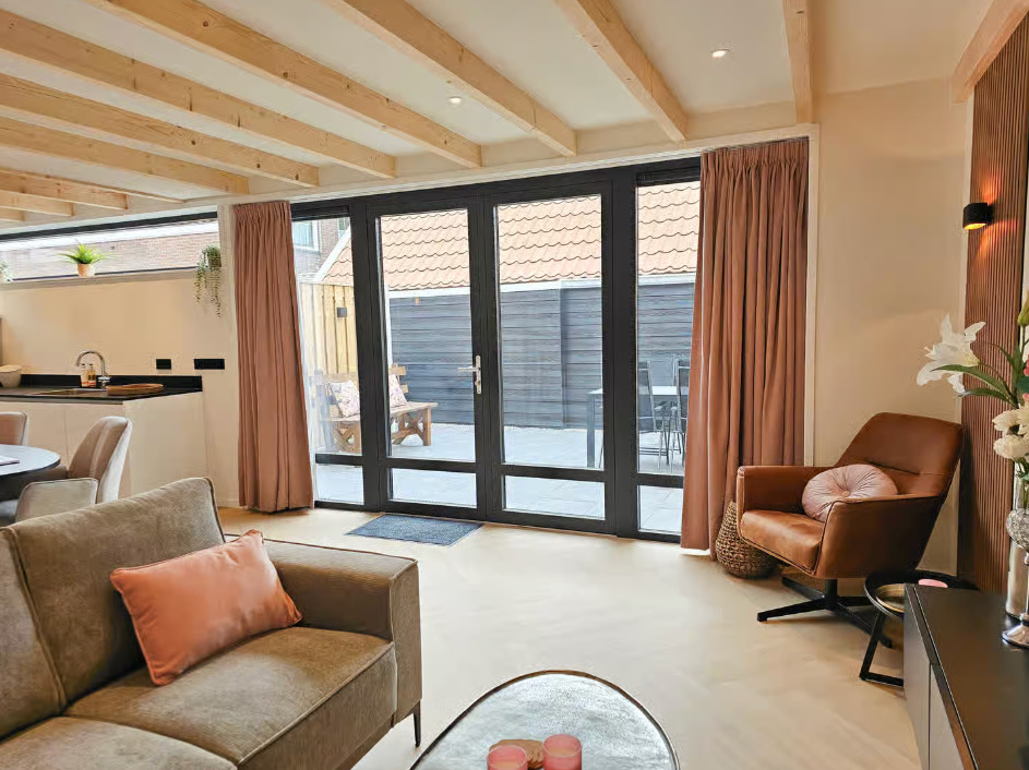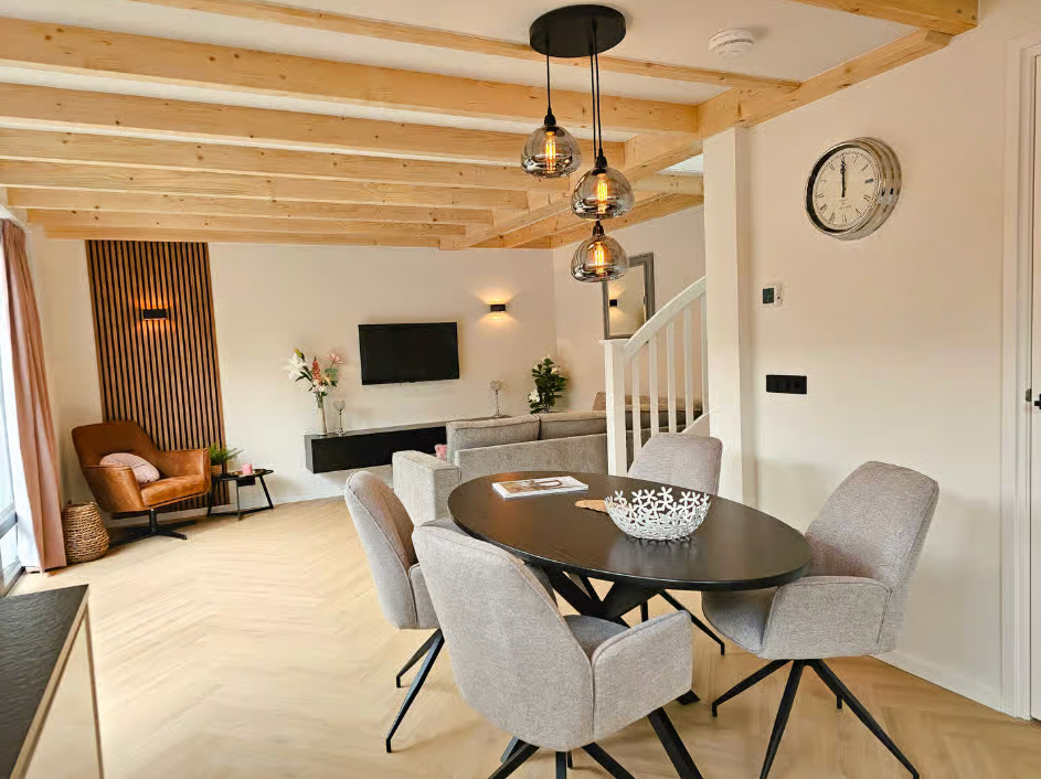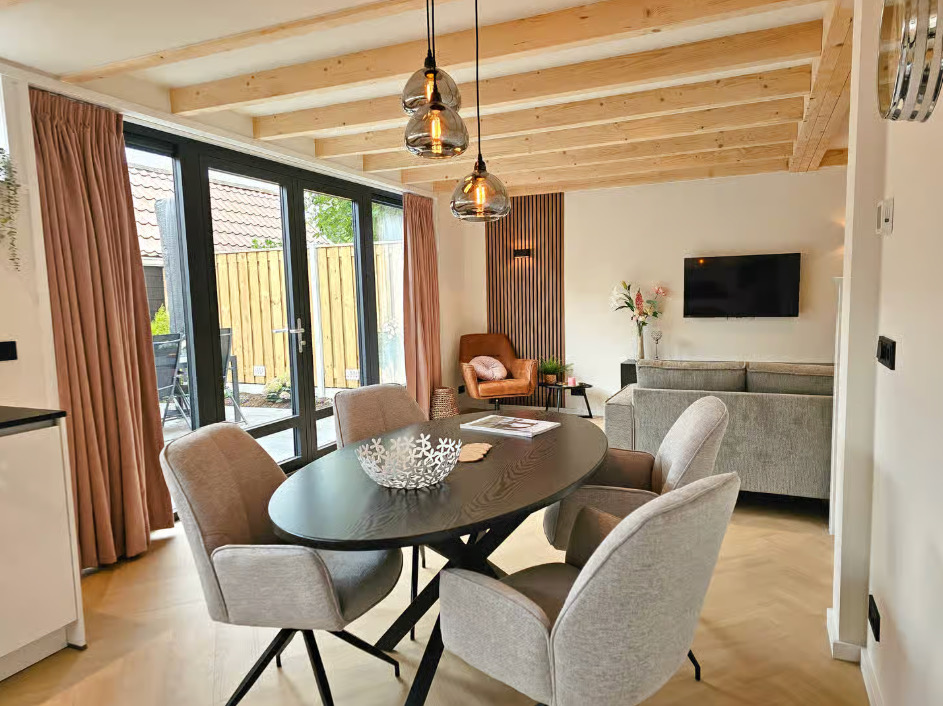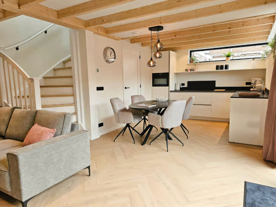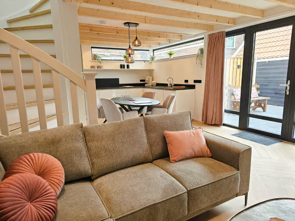 Binnen vind je een comfortabel en compleet ingericht huis, met een lichte woonkamer en een open keuken. Alles wat je nodig hebt is er, zonder dat het ingewikkeld wordt.