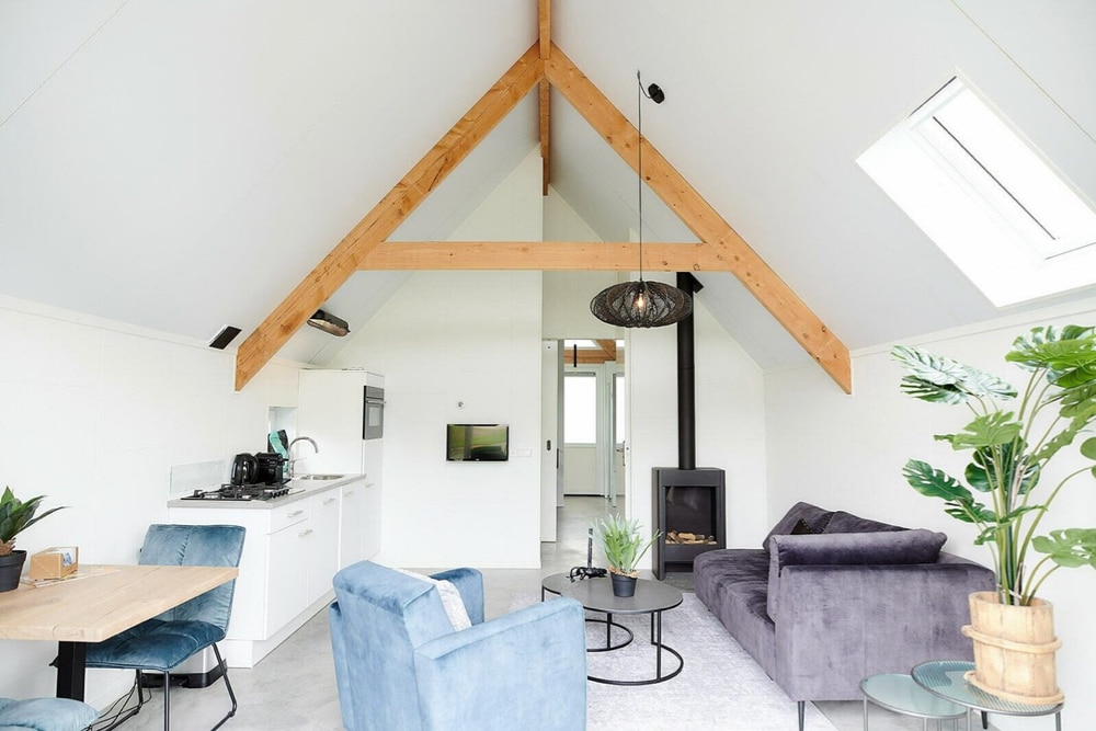 De wellness lodge is een nieuwe accommodatie met een prachtig interieur. In de woonkamer staat een sfeervolle haard, de slaapkamer is ingericht met een comfortabel boxspringbed en een vrijstaand bad. Er is nog een aparte douche en natuurlijk de sauna. Wat een luxe! Het huisje heeft grote ramen en openslaande deuren naar het terras, waar onder andere twee loungebedden staan.